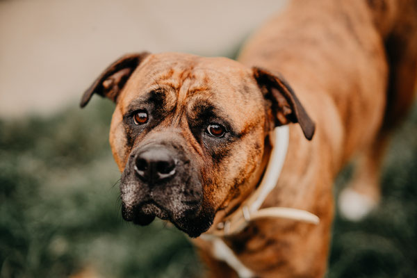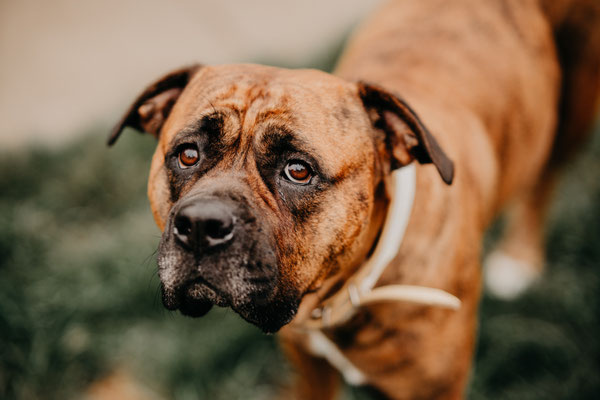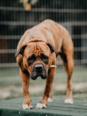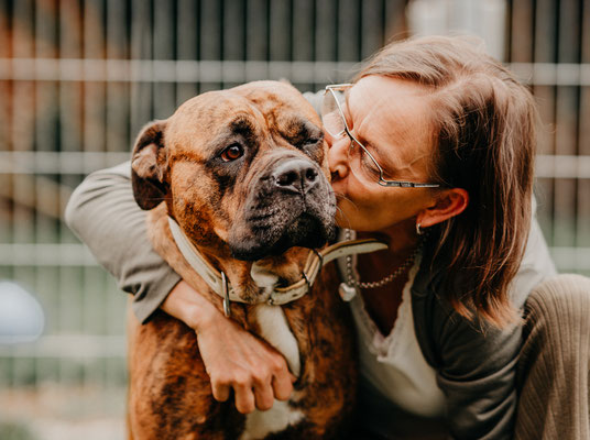 Bonny stammt aus unserer Region. Als Welpe wurde sie als angeblich „reinrassige German Bulldog“ in eine Familie mit drei Kindern geholt. Doch nach einer Trennung und