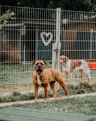 Heute lebt Bonny in unserer kleinen, familiären Hundepension. Dort zeigt sie sich freundlich, aber auch verunsichert – zu viele Eindrücke, zu wenig Rückzugsmöglichkeiten. Sie sehnt sich nach einem Zuhause, das Ruhe und Sicherheit ausstrahlt.