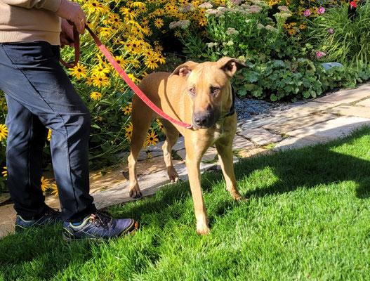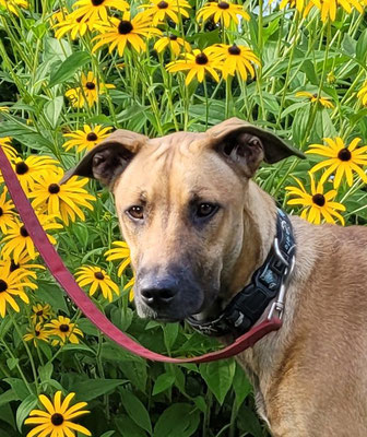 Mia ist eine fröhliche, aufgeschlossene Hündin, die mit ihrem freundlichen Charakter alle um die Pfote wickelt.
